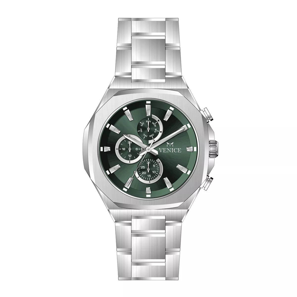 ساعت V802261802 از برند ونیز، یک ساعت تک مردانه است که به شماره رفرانس V80226 شناخته میشود. این ساعت فول تایم با بند فلزی و قاب استیل طراحی شده که همراه با رنگ بند استیل، جلوهای از هنر و شکوه ایتالیایی را به نمایش میگذارد. صفحه این ساعت با رنگ سبز، جذابیت خاصی به آن بخشیده و با دقت در جزئیات، ترکیبی از سنت و مدرنیته را ارائه میدهد.