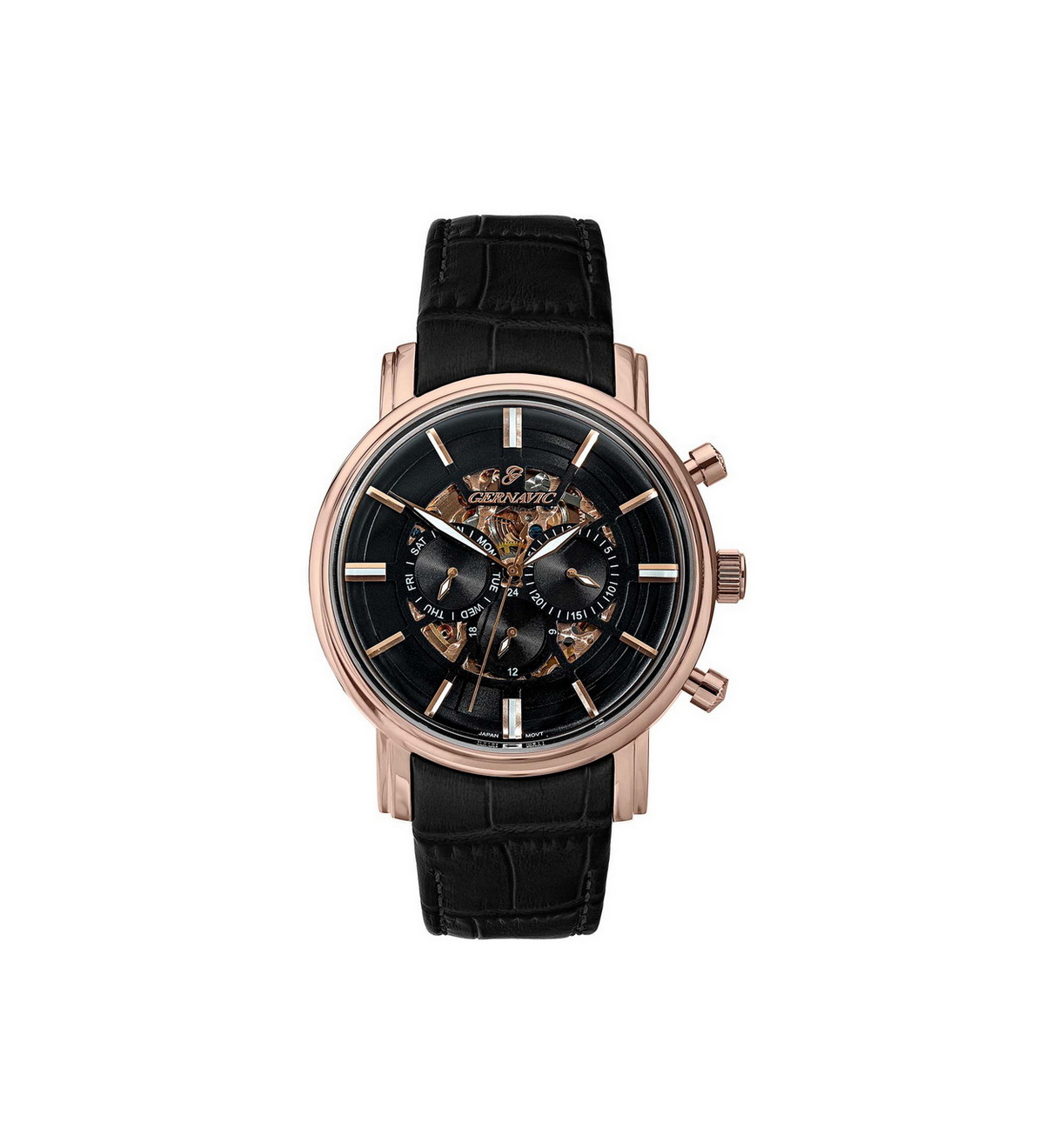 ساعت گرناویک با کد G004563401 ، یک ساعت ست زنانه با شماره رفرانس G456 است که با دقت و فناوری پیشرفته ژاپنی ساخته شده است. این ساعت اتوماتیک با بند چرمی و قاب رز همراه با رنگ بند طراحی شده است تا ظاهری ساده و در عین حال مدرن داشته باشد. صفحه ساعت با رنگ مشکی طراحی شده که در کنار تکنولوژی پیشرفته ژاپنی، دقت و کارایی بینظیری را ارائه میدهد.